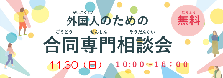 在留資格、労働問題、法律問題、年金、その他生活相談など、外国人市民が困っていることを各機関の専門員に母国語で相談できます。