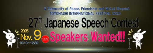 Foreign residents chosen from 5 cities in Higashimikawa area deliver speeches in Japanese about what they feel or think in their daily lives.